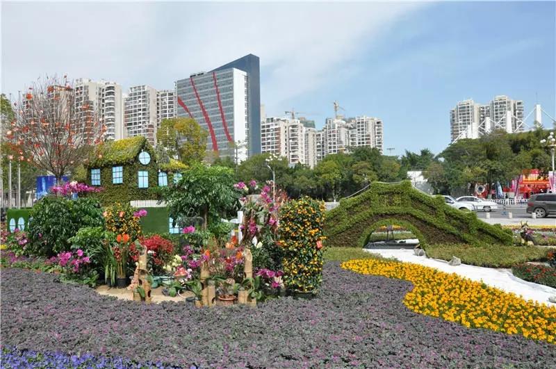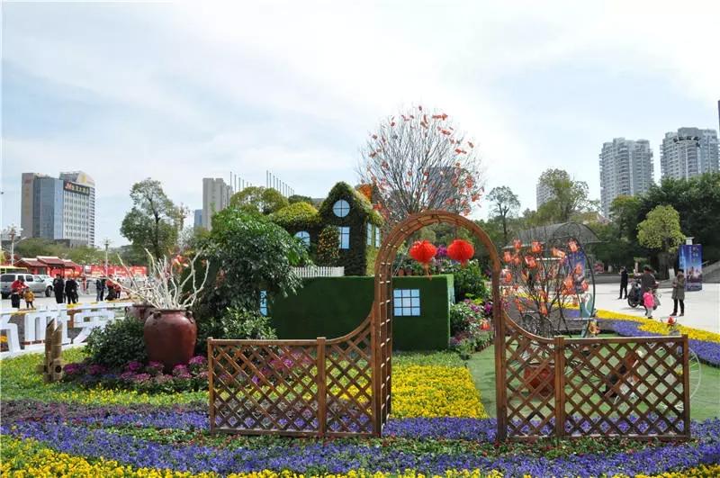 花坛以壶公山为背景山,木兰溪为型,体现“壶山兰水”。以家为场景,小桥流水、草长莺飞、春色满园,代表人民生活品质提高,幸福指数不断提升,点出“美丽莆田、宜居港城”主题。