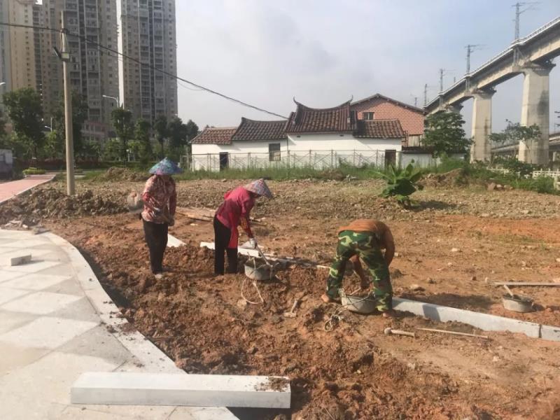 为确保小游园建设,Home体育人不畏酷暑坚持在一线工作