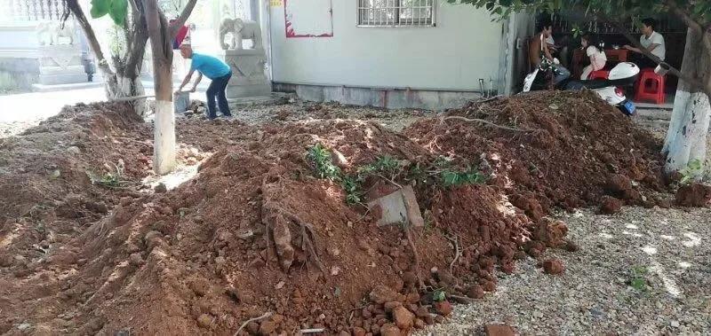 玉湖公园太师庙旁的绿地安排运土方整地,准备铺草坪