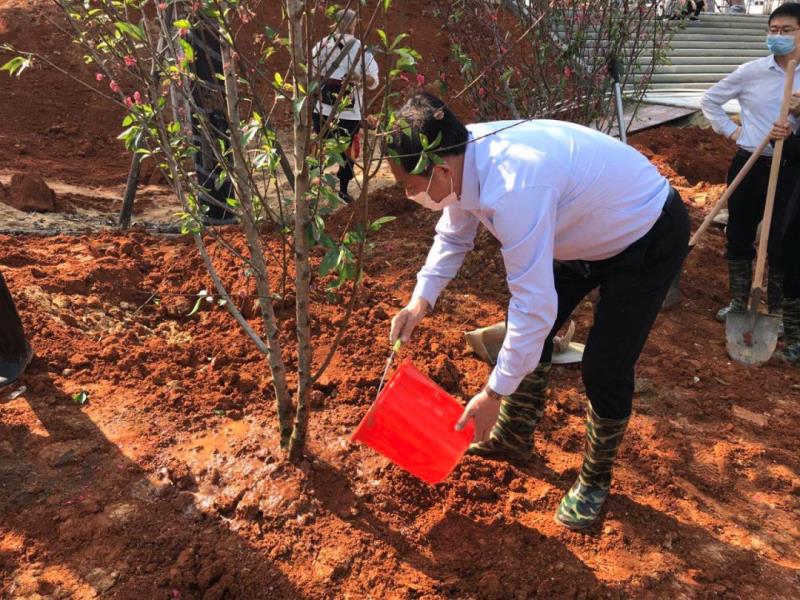 此次植树活动现场共种植桃花、山樱花、梨树等苗木320余株。值此抗击新冠肺炎疫情的关键时期,开展春季义务植树活动,既是营造浓厚的全民植绿爱绿护绿氛围,也是以此来表达全国人民终将战胜新冠肺炎疫情的信心和决心。