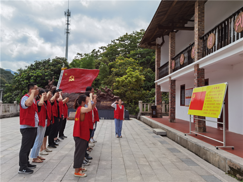 在纪念馆前,全体党员佩戴党徽,肃穆站立,对着党旗,举起右手,庄严的进行了宣誓:“我志愿加入中国共产党,拥护党的纲领,遵守党的章程……。”党员们一字一句,掷地有声,铿锵有力,表达着为党的事业奋斗终身的决心。