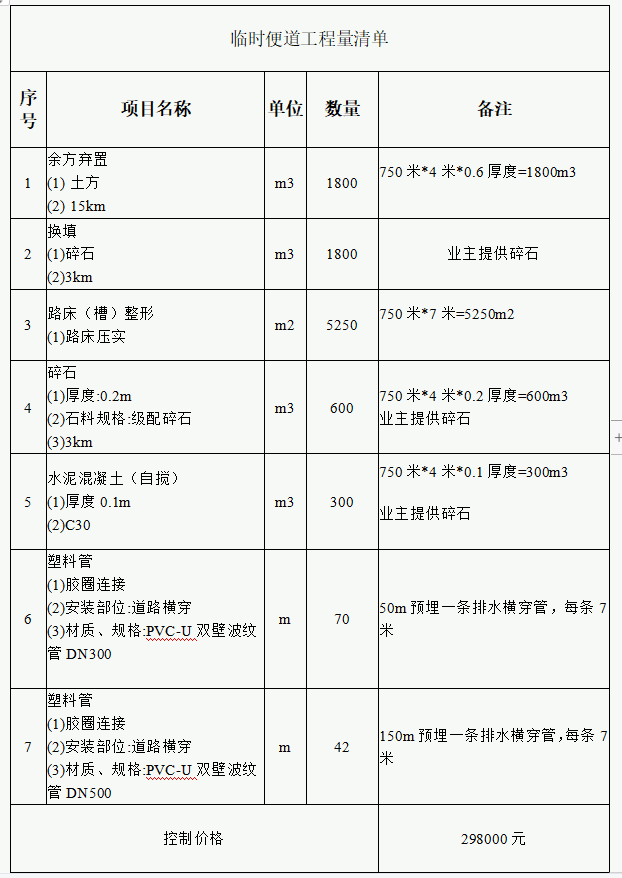 临时便道项目施工班组招标公告因项目建设需要,现以报价方式确定临时便道项目的施工班组单位,请按要求将报价单盖章后提交至Home体育育有限公司招标采购网。 一、项目概况和施工范围 1.建设地点:莆田市绶溪公园游客服务中心后(具体施工范围以现场勘察为主); 2.工程建设规模:总长约750米,宽度约4米。 3.招标内容:临时便道路床(槽)整形宽度约7米,其中4米宽便道需基础开挖深度60公分并用碎石(碎石甲供)换填及压实,开挖土方由施工班组负责外运弃置,临时便道灌注混凝土做法:铺设20公分的级配碎石(碎石甲供)铺垫并压实,再铺设10公分厚C30水泥混凝土(自搅,碎石甲供),水泥路面需割缝及养护一个星期,需预埋排水横穿管及雨水口施工,具体做法详见清单。 注:本项目除碎石由业主提供(运输由施工班组自行负责),其他材料及人工机械等由施工班组提供。 ![]() 4.临时便道做法: