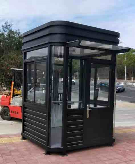 尺寸:2.0*2.0*2.7 (颜色:深灰色立柱: 优质80*80镀锌方管焊接成型横梁:优质80*40镀锌钢管焊接成型屋顶造型:钢结构骨架+镀锌钢板冲压成型屋面:镀锌钢板中性胶密封防水吊顶:优质PVC扣板外墙面:镀锌钢板加工无透气波浪形成型内墙面:优质白色铝塑板四角圆弧:优质8厘白色热弯玻璃成型窗户:铝合金框+5厘白色玻璃门:钢质门(上固定玻璃下封板) 雨披:8厘白色玻璃(门上一块) 地板:低层钢制方通打网格成型、中间工程板、表层为pvc塑胶地板立柱底部安装有15*15*6厘铁板可用膨胀螺丝与水泥地面固定的螺栓孔配置:LED吸顶灯一套,单开关一套,5孔插座两套,空调3孔插座一套,两相空开关一套)